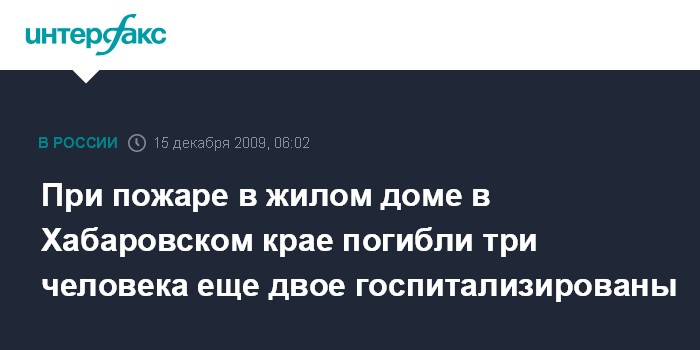 При пожаре в жилом доме в Хабаровском крае погибли три человека еще двое госпитализированы