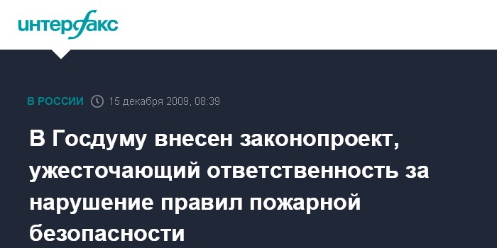 В Госдуму внесен законопроект, ужесточающий ответственность за нарушение правил пожарной безопасности