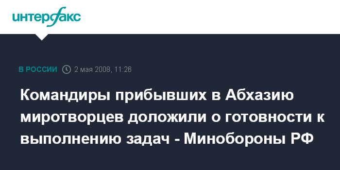 "Командиры подразделений доложили о готовности к выполнению задач по поддержанию мира в зоне грузино-абхазского конфликта", - говорится в сообщении Минобороны РФ, поступившем в "Интерфакс" в пятницу.