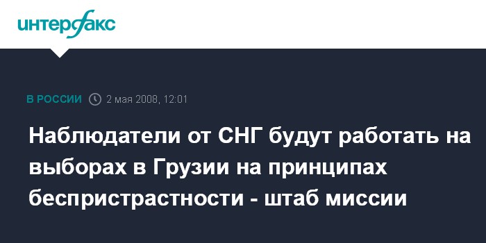 Минск. 2 мая. ИНТЕРФАКС-ЗАПАД - Мониторинг парламентских выборов в Грузии наблюдателями от СНГ будет осуществляться на принципах беспристрастности и политической нейтральности, заявили "Интерфаксу" в пятницу в Исполнительном комитете СНГ в Минске со ссылкой на штаб миссии, который начал работу в Тбилиси.