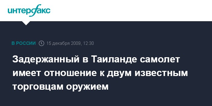 Москва. 15 декабря. INTERFAX.RU – Вооружение, которым был загружен самолет, задержанный в Таиланде, имеет отношение к двум поставщикам оружия из Восточной Европы, сообщает во вторник британская газета "Таймс".