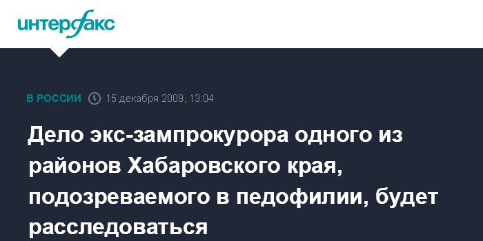 Дело экс-зампрокурора одного из районов Хабаровского края, подозреваемого в педофилии, будет расследоваться