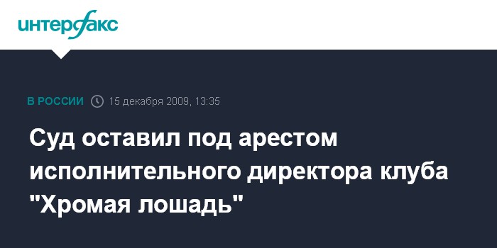 Суд оставил под арестом исполнительного директора клуба "Хромая лошадь"