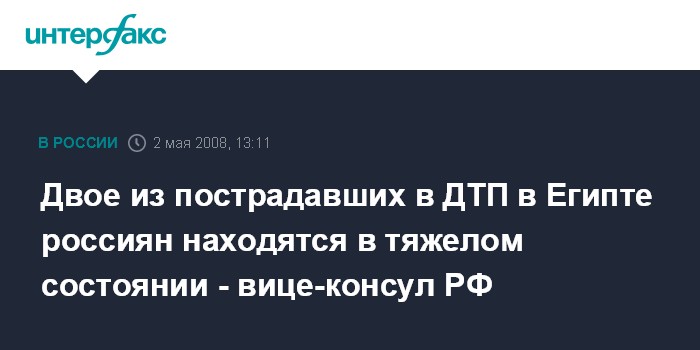 Двое из пострадавших в ДТП в Египте россиян находятся в тяжелом состоянии - вице-консул РФ