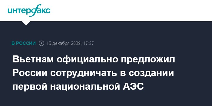 Москва. 15 декабря. INTERFAX.RU - Вьетнам официально приглашает Россию участвовать в создании своей первой атомной станции, заявил премьер-министр Вьетнама Нгуен Тан Зунг.