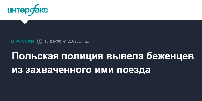 Москва. 15 декабря. INTERFAX.RU - Польские полицейские вывели около 230 беженцев из поезда, захваченного ими на территории Польши, сообщает радиостанция "Маяк".