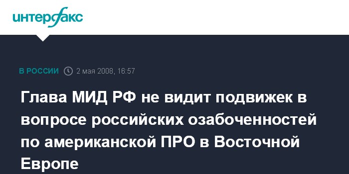 Глава МИД РФ не видит подвижек в вопросе российских озабоченностей по американской ПРО в Восточной Европе
