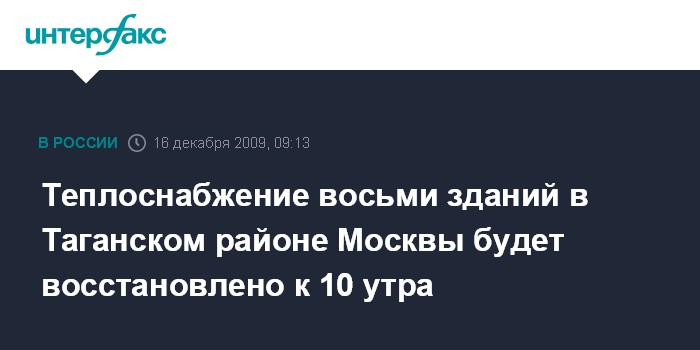 Теплоснабжение восьми зданий в Таганском районе Москвы будет восстановлено к 10 утра