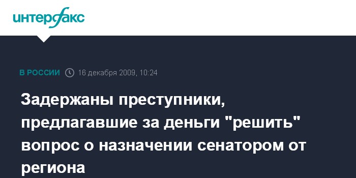 Задержаны преступники, предлагавшие за деньги "решить" вопрос о назначении сенатором от региона