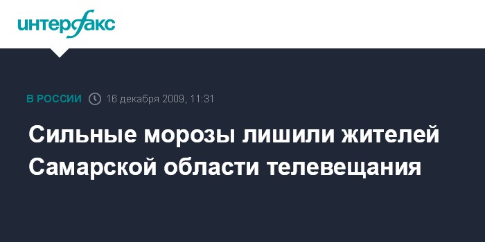 Москва. 16 декабря. INTERFAX.RU - В Самаре из-за морозов произошел прорыв теплотрассы около городского телецентра. Из-за аварии отключено электричество и прекращено телевещание.