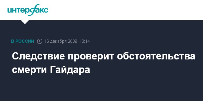 Москва. 16 декабря. INTERFAX.RU - По факту смерти известного политика и экономиста Егора Гайдара будет проведена доследственная проверка, сообщил "Интерфаксу" источник в правоохранительных органах Москвы. "По факту смерти Гайдара планируется провести доследственную проверку", - сказал собеседник агентства.