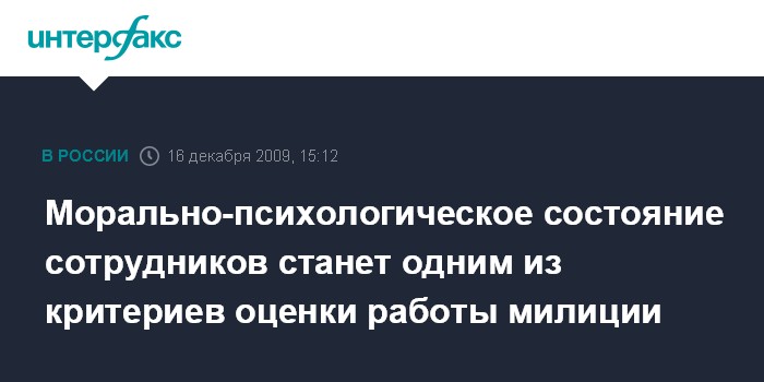 Морально-психологическое состояние сотрудников станет одним из критериев оценки работы милиции