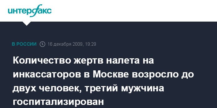 Москва. 16 декабря. INTERFAX.RU – Погиб один из раненных в Москве в среду при нападении на инкассаторов возле торгового центра "Москва".