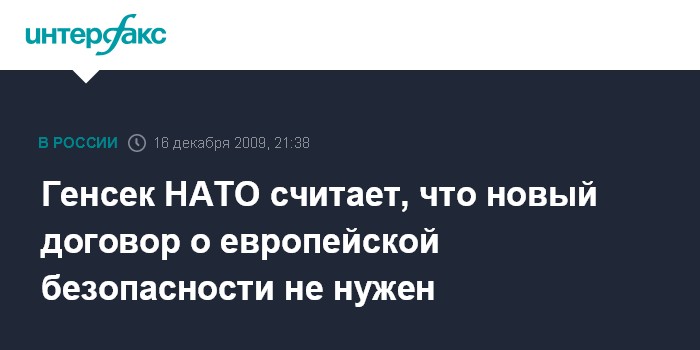 Москва. 16 декабря. INTERFAX.RU – Необходимости в новом юридически обязывающем договоре о европейской безопасности нет, считает генсек НАТО Андрес Фог Расмуссен.