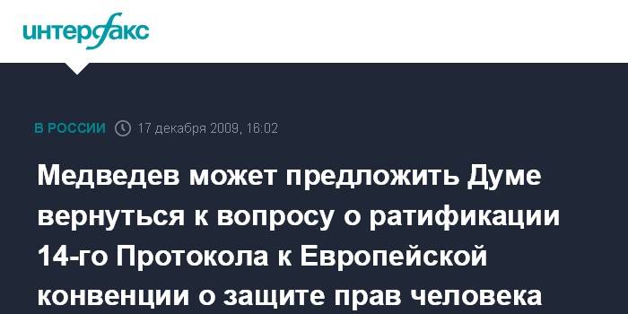 Медведев может предложить Думе вернуться к вопросу о ратификации 14-го Протокола к Европейской конвенции о защите прав человека