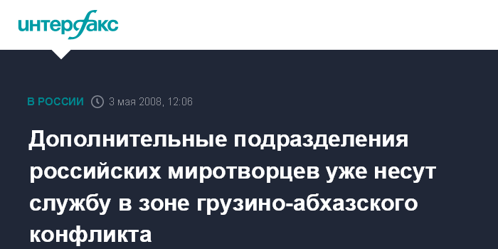 Москва. 3 мая. INTERFAX.RU - Миротворческие подразделения, прибывшие на днях в состав Коллективных сил по поддержанию мира (КСПМ) СНГ в зоне грузино-абхазского конфликта, выдвинулись в районы несения службы, сообщает управление информации и общественных связей Минобороны РФ.