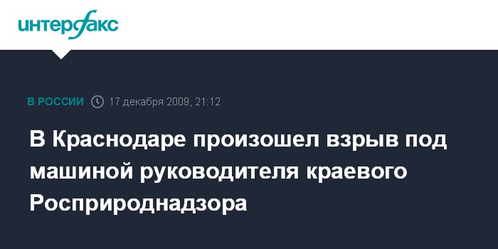 Москва. 17 декабря. INTERFAX.RU - В Краснодаре в четверг вечером под автомобилем "Волга" взорвался неустановленный предмет, никто не пострадал, сообщил агентству "Интерфакс-Юг" начальник пресс-службы УВД города Илья Шакалов. По его данным, хлопок раздался в 19:15 мск на улице Рашпилевской в центре города. Машина была припаркована возле офиса ООО "Радиационный контроль".