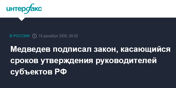 Москва. 18 декабря. INTERFAX.RU - Президент России Дмитрий Медведев подписал Федеральный закон "О внесении изменений в статьи 18 и 19 Федерального закона "Об общих принципах организации законодательных (представительных) и исполнительных органов государственной власти субъектов Российской Федерации" и статью 261 Федерального закона "О политических партиях", сообщает в пятницу пресс-служба Кремля.