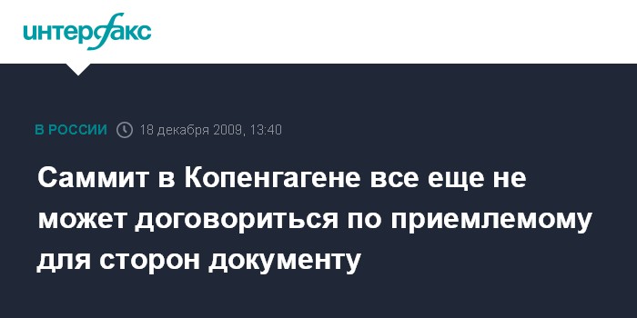 Москва. 18 декабря. INTERFAX.RU - Участникам Климатического саммита в Копенгагене пока не удается выйти на взаимоприемлемый документ, заявил "Интерфаксу" источник в российской делегации.