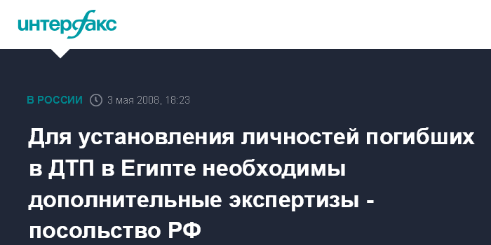 Москва. 3 мая. INTERFAX.RU - Проведенное в Египте опознание не позволяет со 100%-уверенностью утверждать, что две погибшие женщины являются гражданками России, сообщил "Интерфаксу" в субботу вечером вице-консул посольства РФ в Каире Тимур Агаметов.