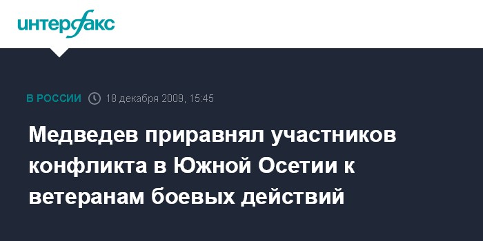 Медведев приравнял участников конфликта в Южной Осетии к ветеранам боевых действий