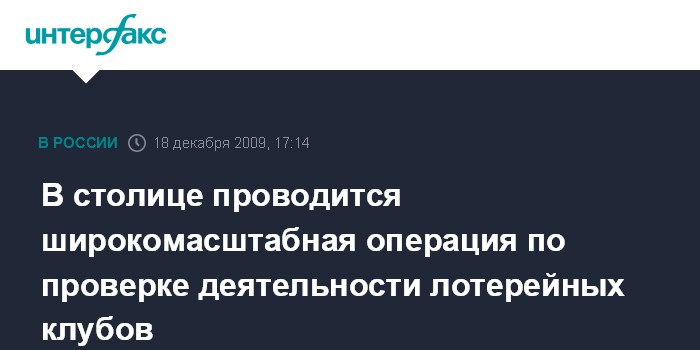 Москва. 18 декабря. INTERFAX.RU - В Москве оперативники Управления по борьбе с экономическими преступлениями ГУВД столицы проводят крупномасштабную операцию по проверке деятельности лотерейных клубов.