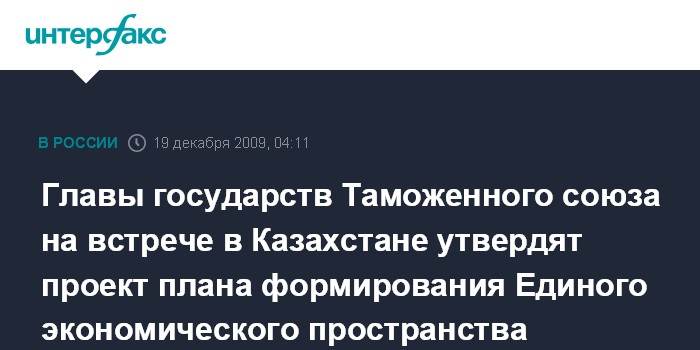 Главы государств Таможенного союза на встрече в Казахстане утвердят проект плана формирования Единого экономического пространства