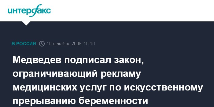 Медведев подписал закон, ограничивающий рекламу медицинских услуг по искусственному прерыванию беременности