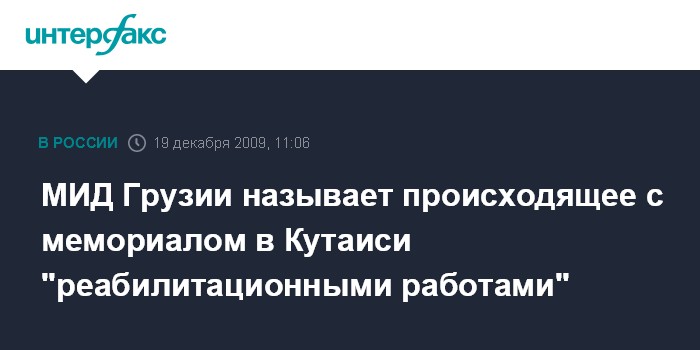 Москва. 19 декабря. INTERFAX.RU - МИД Грузии заявляет, что Мемориал славы в городе Кутаиси, против демонтажа которого протестует грузинская оппозиция и ветеранские организации, серьезно пострадал во время гражданской войны в начале 90-х годов и требует реставрации.