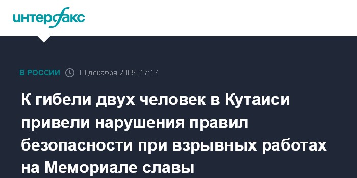 К гибели двух человек в Кутаиси привели нарушения правил безопасности при взрывных работах на Мемориале славы