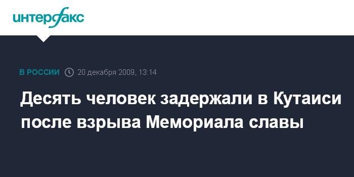 Тбилиси. 20 декабря. INTERFAX.RU - Прокуратура региона Имерети задержала 10 человек в связи с подрывом 19 декабря Мемориала славы в городе Кутаиси, повлекшим за собой человеческие жертвы. Как сообщили "Интерфаксу" в прокуратуре региона Имерети, задержаны в основном сотрудники частного предприятия "Грузвзрывпром", которые производили подрыв Мемориала. В настоящее время они допрашиваются в качестве подозреваемых. В ходе произошедшего накануне подрыва Мемориала славы осколками бетона были на месте убиты мать и дочь Джинчарадзе.