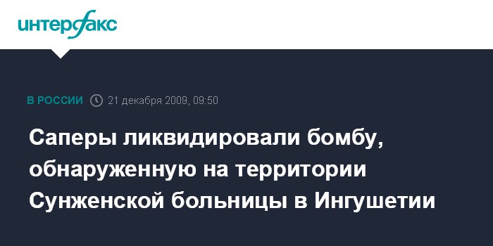 Саперы ликвидировали бомбу, обнаруженную на территории Сунженской больницы в Ингушетии