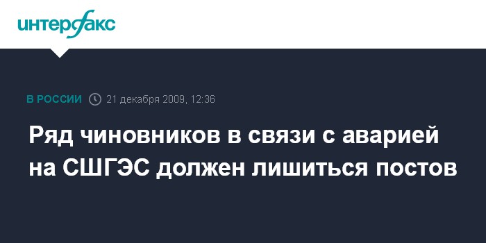 Ряд чиновников в связи с аварией на СШГЭС должен лишиться постов
