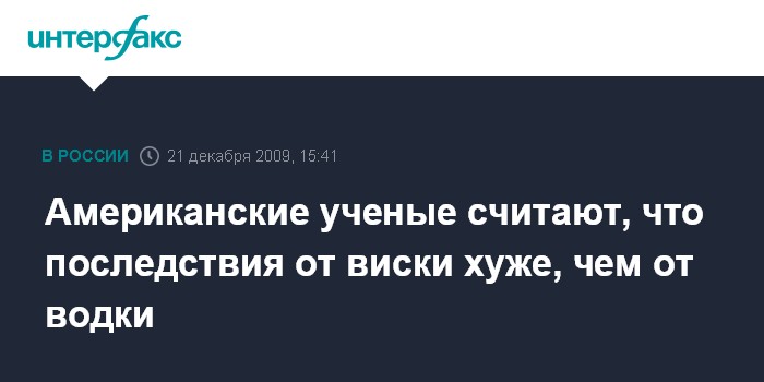 Москва. 21 декабря. INTERFAX.RU - Виски, по крайней мере, американский, может вызвать более сильный похмельным синдром, чем водка.