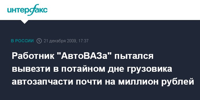 Москва. 21 декабря. INTERFAX.RU - Сотрудники службы безопасности совместно с отделом милиции "АвтоВАЗа" в Жигулевске задержали работника завода, пытавшегося на "КАМАЗе" увезти похищенные автокомплектующие с завода.