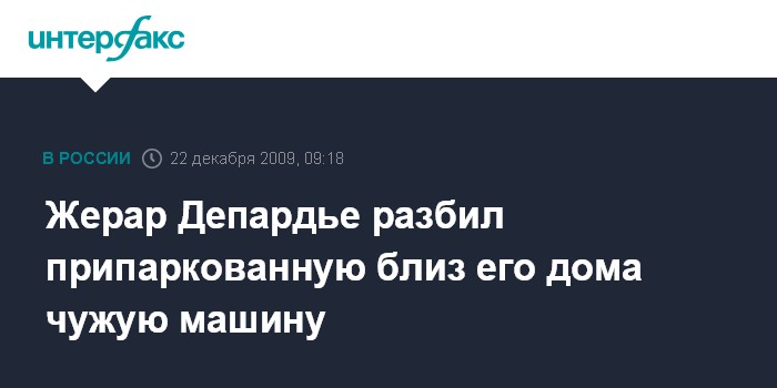 Москва. 22 декабря. INTERFAX.RU - Известный киноактер Жерар Депардье в ближайшие дни будет вызван в полицию, чтобы объяснить, по каким причинам он разбил автомобиль, припаркованный недалеко от его дома в Париже.