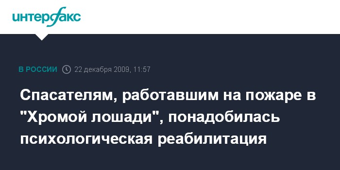 Москва. 22 декабря. INTERFAX.RU – Некоторые спасатели Пермской городской службы спасения, работавшие на пожаре в клубе "Хромая лошадь" 5 декабря, до сих пор проходят психологическую реабилитацию, сообщил директор службы Алексей Тихомиров.
