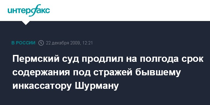 Пермский суд продлил на полгода срок содержания под стражей бывшему инкассатору Шурману