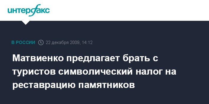 "Можно ввести такую таксу, условно говоря, по 2 евро с туриста. Это совсем небольшие деньги, их смогут заплатить, а сумма получится значительной для реставрации памятников", - сказала губернатор. Она предложила профильным комитетам продумать и проработать этот вопрос, чтобы вынести предложения для обсуждения на федеральном уровне.