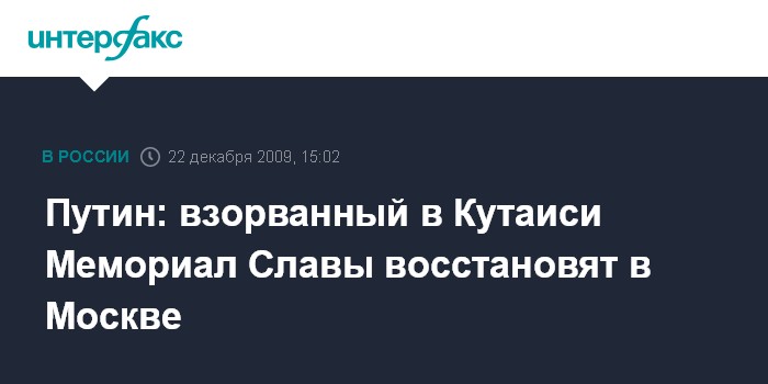 Путин: взорванный в Кутаиси Мемориал Славы восстановят в Москве