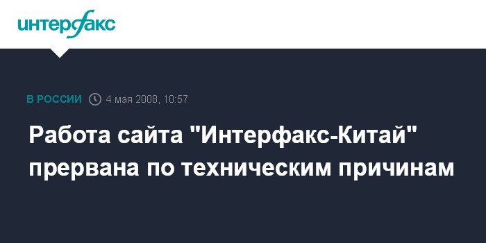 Работа сайта "Интерфакс-Китай" прервана по техническим причинам
