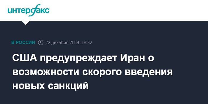 Москва. 22 декабря. INTERFAX.RU - Декабрь может стать последним сроком для Ирана перед введением новых санкций со стороны международного сообщества, если Тегеран не примет условия "шестерки" по иранской ядерной программе, сообщили американские СМИ со ссылкой на заявление официального представителя Белого дома Роберта Гиббса. По словам американского дипломата, этот месяц, "очень вероятно, станет последним сроком для международного сообщества".