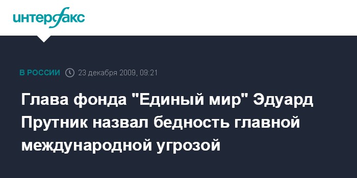 Глава фонда "Единый мир" Эдуард Прутник назвал бедность главной международной угрозой