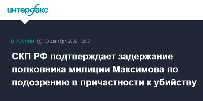 СКП РФ подтверждает задержание полковника милиции Максимова по подозрению в причастности к убийству