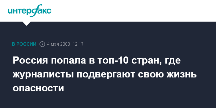 Нью-Йорк (ООН). 4 мая. INTERFAX.RU - Россия заняла девятое место в списке стран с наибольшим числом нераскрытых убийств работников СМИ, который был составлен Международным комитетом по защите журналистов.