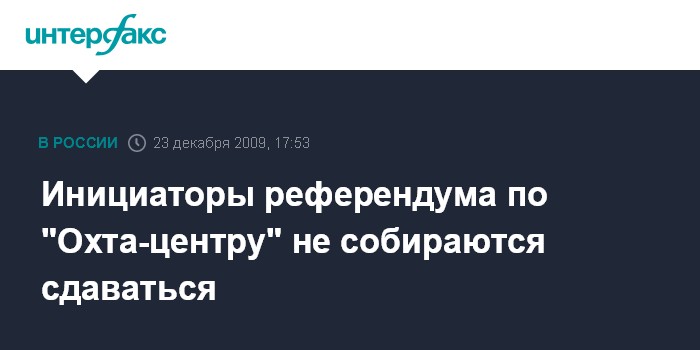 Москва. 23 декабря. INTERFAX.RU – Инициаторы референдума по "Охта-центру" в Петербурге, проведение которого в среду не одобрил городской парламент, намерены предпринять новую попытку его проведения или обжаловать решение законодательного собрания в суде.