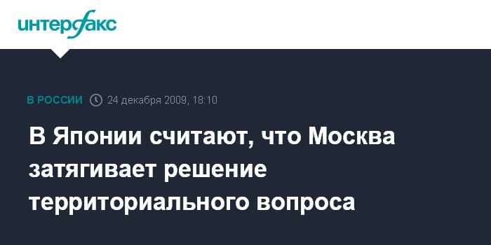Москва. 24 декабря. INTERFAX.RU - В Японии считают, что Москва затягивает решение территориального вопроса. "Прошло уже более шестидесяти лет с момента возникновения этой проблемы. Сколько еще времени нам необходимо?" - сказал в интервью "Интерфаксу" глава МИД Японии Кацуя Окада в преддверии своего визита в Москву.