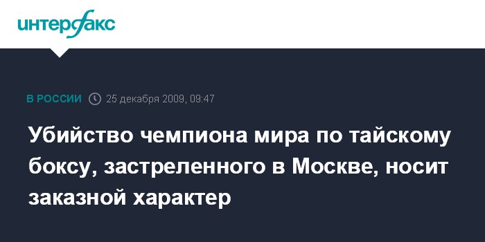 Москва. 25 декабря. INTERFAX.RU - Москва. 25 декабря. ИНТЕРФАКС-МОСКВА - Убийство чемпиона мира по тайскому боксу Абдуллаева, произошедшее накануне на севере Москвы, носит заказной характер, заявил "Интерфаксу" источник в правоохранительных органах в пятницу.