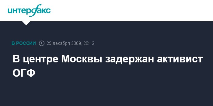 Москва. 25 декабря. INTERFAX.RU - Активист Объединенного гражданского фронта (ОГФ) задержан в пятницу в Москве во время одиночного пикета в защиту 31-й статьи Конституции - о праве граждан на проведение мирных митингов, собраний и пикетов, утверждают в ОГФ. "Сегодня, 25 декабря, во время одиночного пикета на Триумфальной площади был задержан активист ОГФ Александр Тутаев. Он доставлен в Тверское ОВД", - говорится в сообщении пресс-службы ОГФ, распространенном в пятницу.