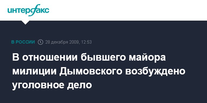В отношении бывшего майора милиции Дымовского возбуждено уголовное дело